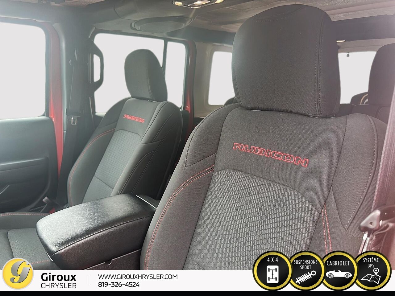 sièges en tissu avec logo rubicon et filet de rangement utilitaire